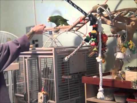 Charlie is my 20 year old White Fronted Amazon. When I adopted Charlie a few months ago, he was very fearful of the stick. He would sometimes step onto a stick for someone, but only after he felt he had no choice. This is using negative reinforcement, which means that something aversive goes away, in this case, the stick stops chasing you, when you do the behavior...stepping onto the stick. As you can imagine, it can be relationship damaging but it can also make the stick a scary thing. Also Charlie is more comfortable with men than women and part of what I am trying to do is make him more comfortable with me. Doing something frightening, like chasing him with a stick, would not be helping to further our relationship and take it in the direction I want to go. I want Charlie to feel comfortable and safe around the stick and around me.